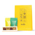 A radiant yellow bag with gold foiling, thoughtfully filled with artisanal mithai, fine nuts & handcrafted cookies — a graceful blend of tradition and delight.